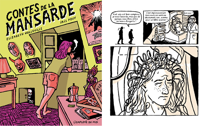 獲得高中生漫畫獎的《閣樓故事》(Contes de la mansarde)也可說是承接上文的女流創作,是由兩位女性創作出的作品,但內容卻是挑戰恐怖、怪誕的題材。伊理・普依(Iris Pouy)和伊莉莎白・霍樂維樂(Elizabeth Holleville)繪製了三個短篇故事,每篇故事都發生在同一個地方:巴黎市中心的公寓裡。先是角色對自己的死亡著迷求助於特殊公司,再來是繼承祖母藝術收藏品的奇怪故事,最後則是漫畫作者發現永保青春的短篇;每篇故事都有類型作品的懸念,讓人再三回味。